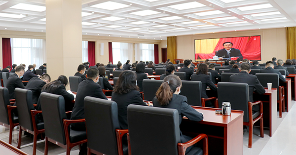 报告会以视频方式召开,最高人民法院设主会场,自治区高级人民法院,各中、基层人民法院设分会场。全区各级人民法院院领导、部门负责人(党支部书记)、干警代表参加了会议。