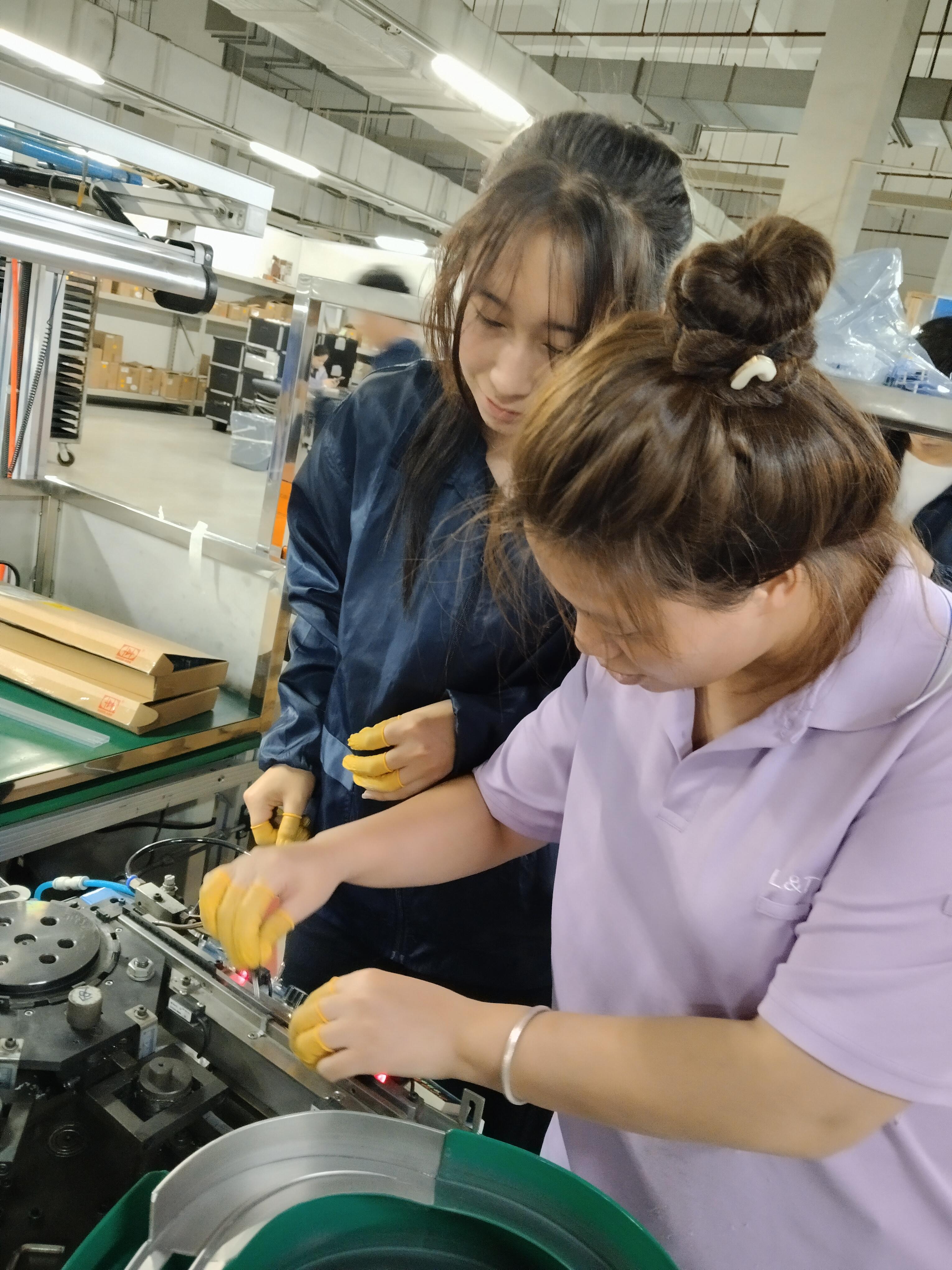 福建企业的生产线内,来自隆德的学子认真进行实操练习。