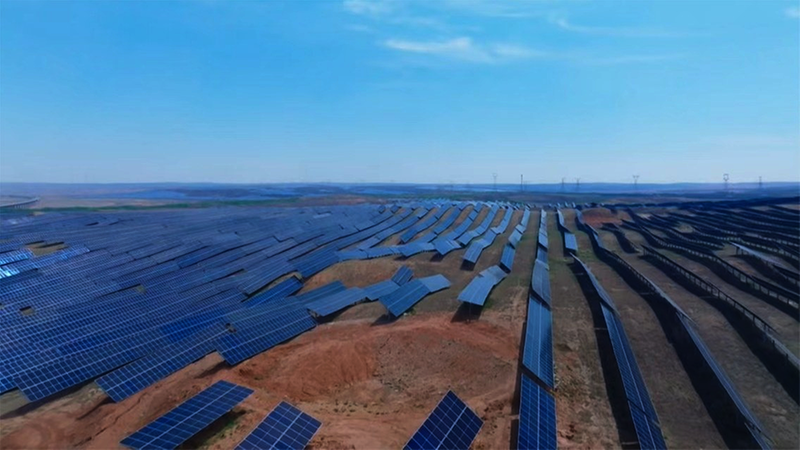 一片片光伏板汇成的“蓝色海洋”,在阳光照射下反射出耀眼光芒(摄于2025年10月26日)。