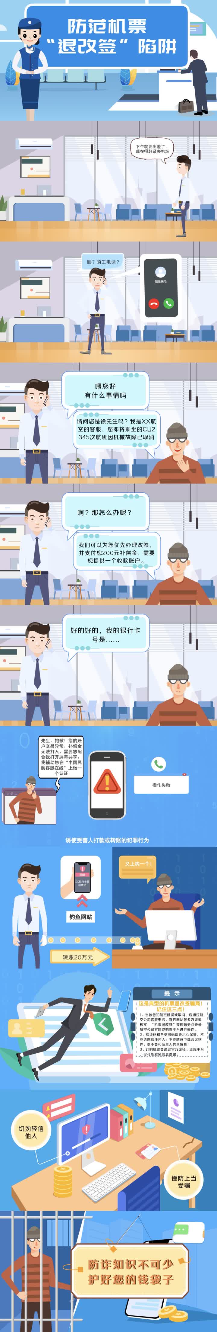 网事法眼|长图:防范机票“退改签”诈骗陷阱