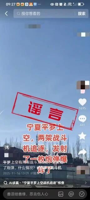 11月16日,家住平罗县的刘某某偶然发现天上飞过两架飞机,随即用手机拍摄视频并发布至某视频平台,还编造“平罗上空出现两架战斗机追逐并发射一枚炮弹”的虚假配文。该视频发布后迅速传播,短短一天内浏览量高达42万次,相关谣言信息同步在多个社交平台扩散,引发大量网民关注,造成辖区部分居民恐慌,严重扰乱了社会公众秩序。平罗县公安局网安大队在网络巡查工作中及时发现该虚假信息,第一时间启动核查处置程序,联合城关南街派出所将散播谣言的刘某某抓获。