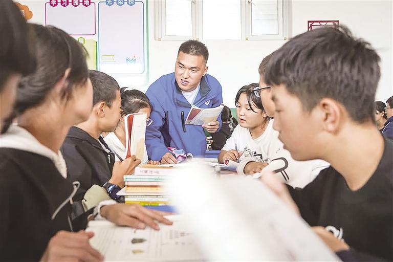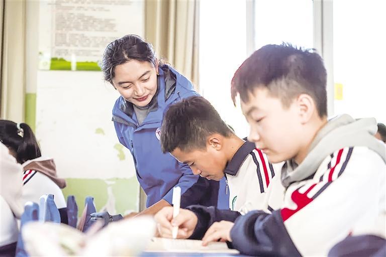 在海原县第五中学支教的阿依加玛丽·艾尔肯来自新疆喀什的一个偏远乡镇。秋季学期开学那天,玛丽站在校门口迎接新生的到来。当看到学生们背着书包、拖着行李走进校门时,她一下想起了自己小时候求学的经历——“他们和我小时候一模一样,小小年纪就住校,爸妈不在身边”。从此,她对学生们多了一份理解和共情:“很多孩子缺乏家庭的管束和关心,哪怕是一句‘记得加件衣服’,也可能成为他们努力学习的力量。”