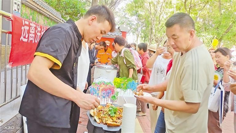 银川市兴庆区丽景街街道景墨社区,美食文化节吸引各族居民“打卡”。