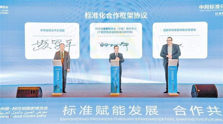 据了解,2024年,中阿贸易额已达4074亿美元。随着中阿经贸合作全面深入发展,标准作为桥梁和纽带的重要作用也日益凸显。此次活动中,阿拉伯国家标准化(宁夏)研究中心与亚欧非贸易投资联合促进会、中阿经贸合作示范园三方签署标准化合作协议,将进一步加强对阿拉伯国家标准化领域的研究,助力中阿在技术法规、标准互认、质量认证等领域的对接,加速中国标准“走出去”。