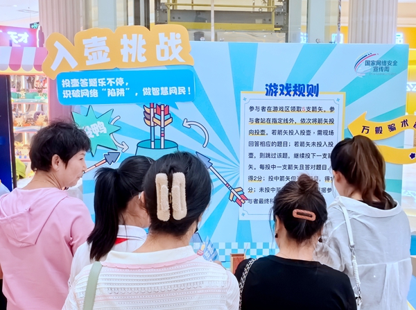 9月19日,在新华百货CCpark购物广场,一处“网络安全知识补给站”引发过往市民的关注,当天,由自治区党委网信办组织的“网安知识进商圈”在此举行,活动以趣味游戏为载体,沙包阻击战、入壶挑战、魔力套圈圈……广大市民通过一系列小游戏学习网络安全知识。此次活动不仅提升了市民群众对于网络安全活动的参与感,更通过寓教于乐的方式学习到了网络安全知识和技能,吸引了众多市民排队打卡。记者 闫文丽/摄