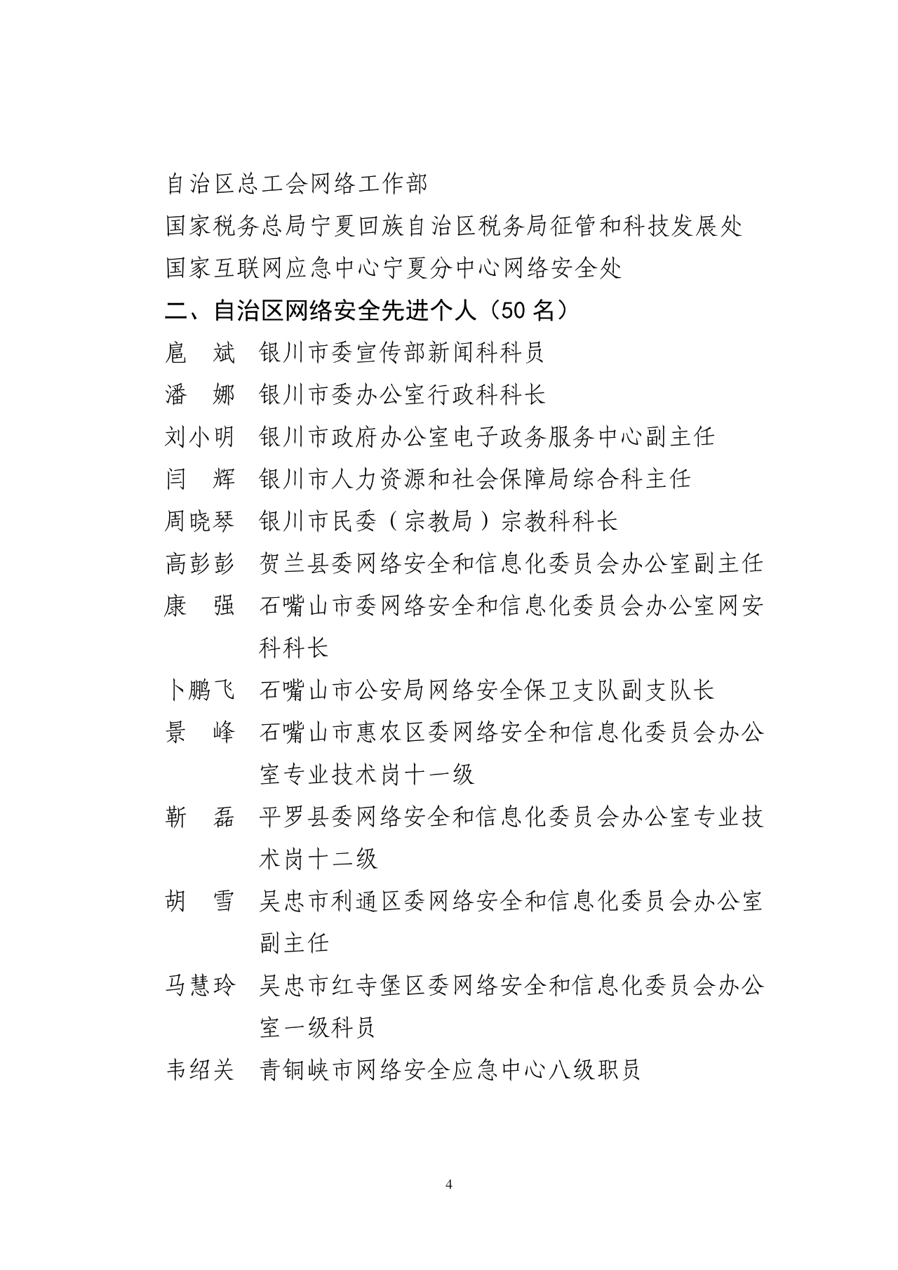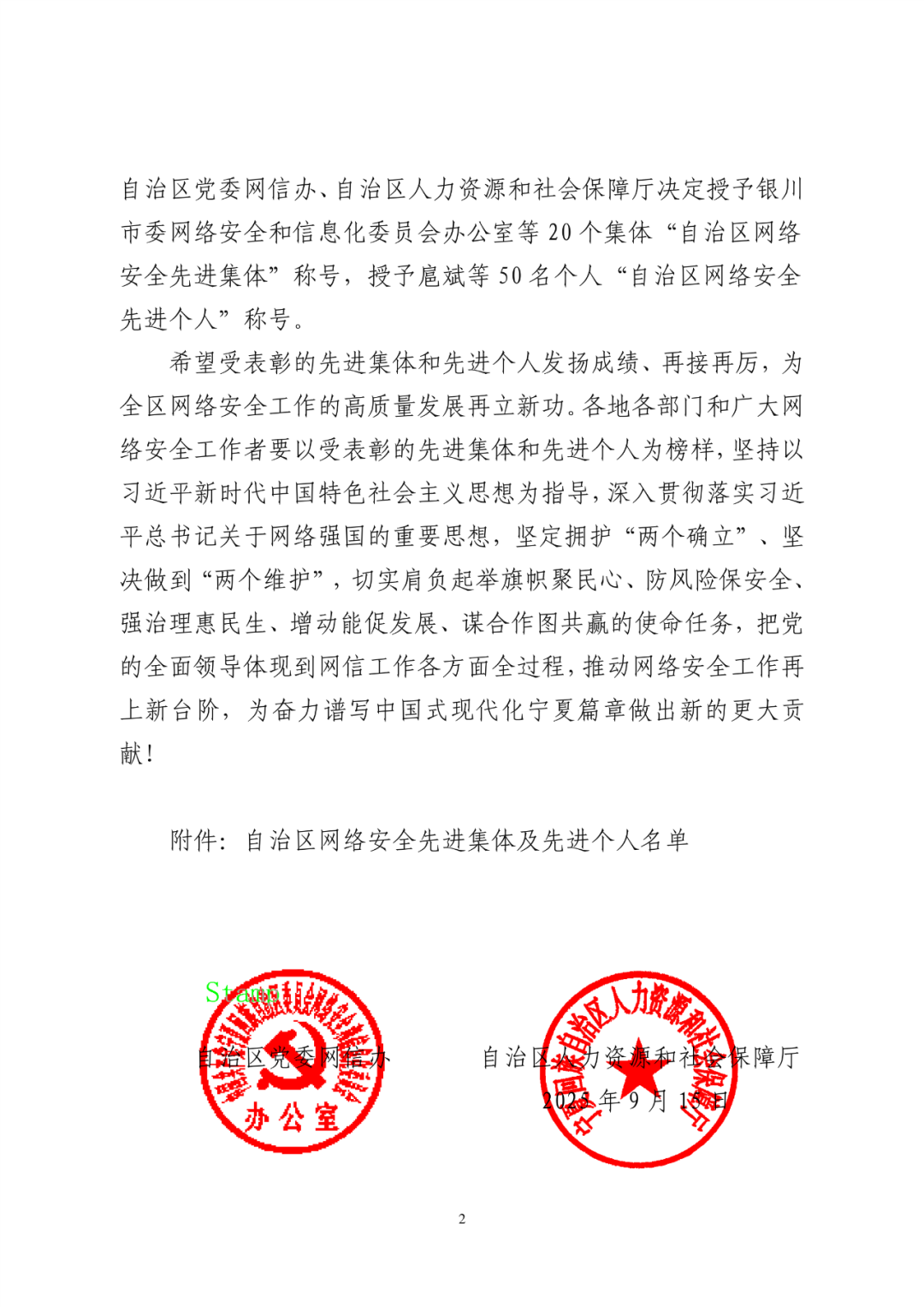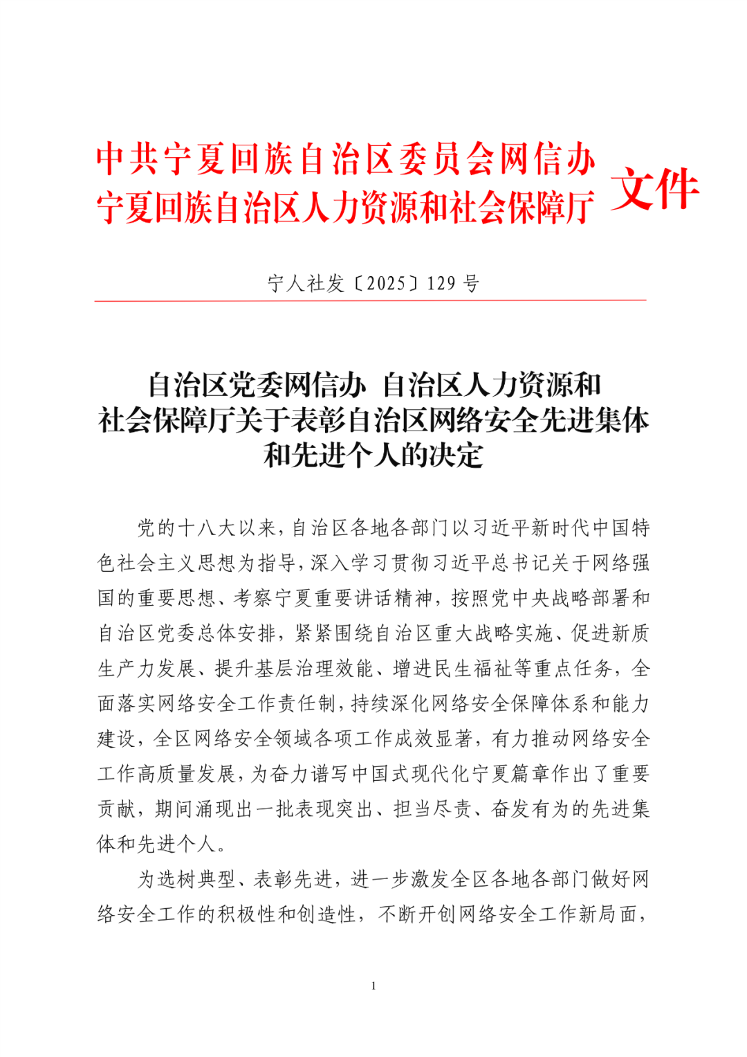 自治区党委网信办 自治区人力资源和社会保障厅关于表彰自治区网络安全先进集体和先进个人的决定