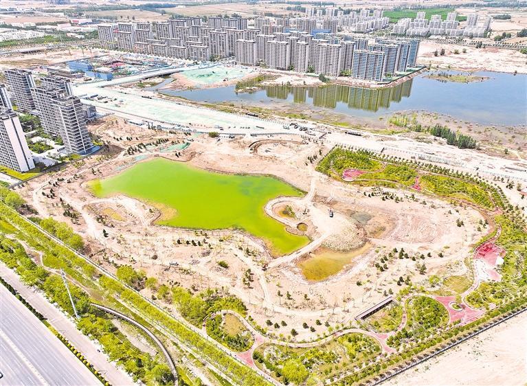 今年5月17日,位于银川市团结路与唐徕渠交叉口西南角,大碱湖海绵湿地生态公园建设现场。该项目是银川市2025年民生“十心”实事中休闲健身“悦心”工程的核心项目之一。记者 马楠 摄