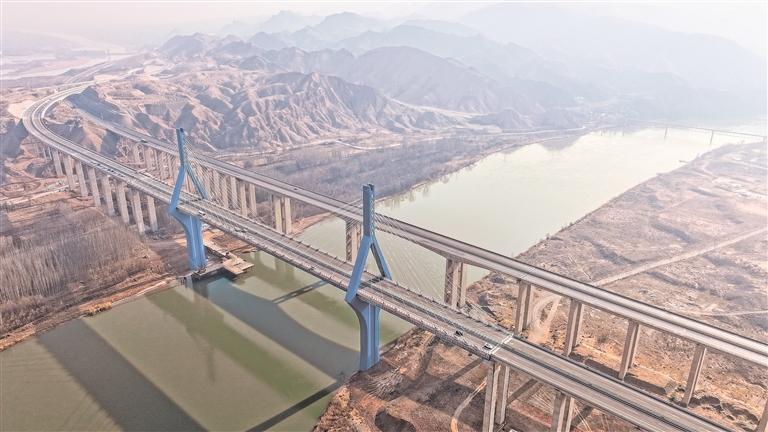 项目线位高,桥多墩高,施工作业面狭窄,是近年来施工难度、投资规模都较大的普通国道建设项目。其中,黑山峡黄河公路特大桥主桥采用450米双塔双索面半漂浮体系钢混组合梁斜拉桥,倒Y字形钻石形桥塔结构,桥塔高达145米。