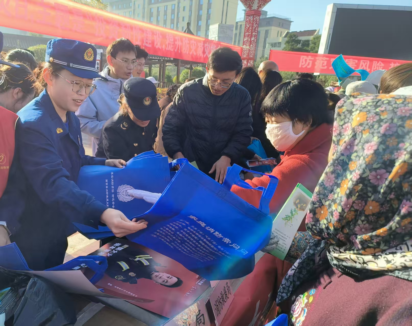 活动现场,消防救援人员与志愿者分工明确、协作紧密,打造了多维宣传场景。在咨询服务专区,针对群众提出的电动车充电安全、家庭电路检修燃气泄漏处置等热点问题,消防救援人员结合典型火灾案例,用通俗语言逐一解答,精准破除日常防火认知盲区;志愿者同步开展宣传资料发放工作,将图文并茂的家庭防火手册、应急避险指南,以及印有安全提示的消防主题海报、环保袋等送到群众手中,让安全知识可携带、易查阅。
