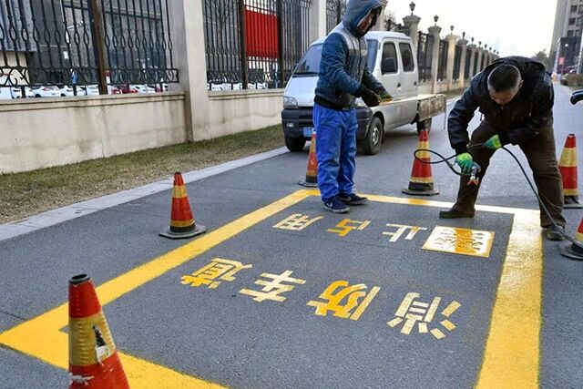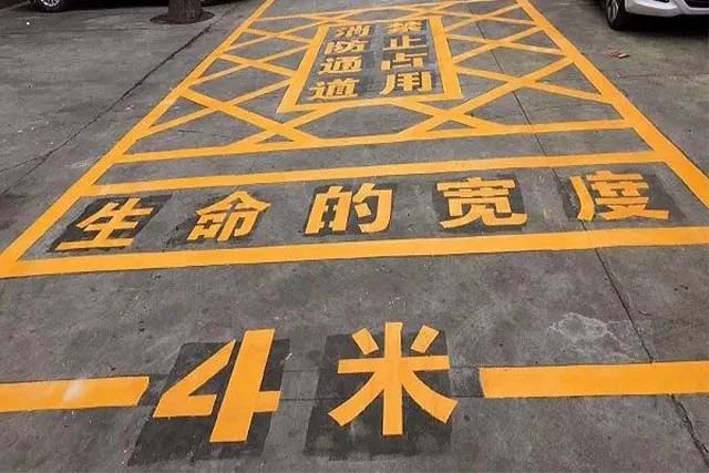 单位或者住宅区的消防车通道出入口路面,要按照消防车通道净宽规划禁停标线。标线为黄色网状实线,外边框线宽20厘米,内部网格线宽10厘米,内部网格线与外边框夹角45度,标线中央位置沿行车方向标注内容为“消防车道 禁止占用”的警示字样。在消防车通道两侧还要设置醒目的警示牌,提示严禁占用消防车通道,违者将承担相应的法律责任等内容。